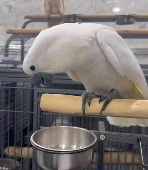 Nejlepší by bylo mít ho doma, jen ptáka a žádná jiná zvířata, protože se může trochu unavit. Žádné malé děti. Potřebuji najít domov co nejdříve, protože můj syn je alergický. Na fotkách je klec.
