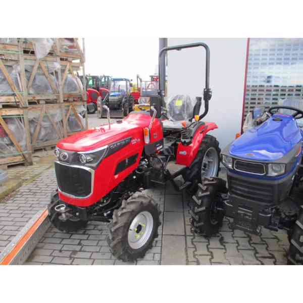Malotraktor o výkonu 25HP s pohonem 4×4, vývodovou hřídelí a 3 bodovým zadním závěsem pro připojením standardního příslušenství s možností přihlášení na SPZ. Součástí je ochranný rám. Záruka 2 roky Výkon: 25HP Počet valců: 3 Obsah: 1130ccm Palivo: Nafta Chlazení: Vodou Náhon: 4x4 Počet rychlostí: 6 rychlostí vpřed ; 2 rychlosti vzad Uzávěrka diferenciálu: Ano Vývodová hřídel (PTO): 635/1116 3 bodový závěs: Ano kat I. Přední kola: 5,00-12 Zadní kola: 8,00 -16 Rozměry (d x š x v): 250 x 98 x 185cm Hmotnost: 625Kg